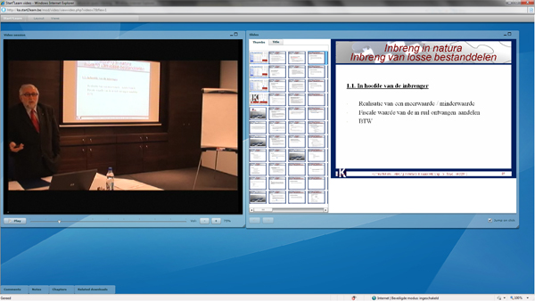 U kunt een ruime selectie van de seminaries en opleidingen van KennisAteliers opnieuw bekijken op uw computer op kantoor of thuis. De video’s van de kennisateliers zijn bovendien gesynchroniseerd met de presentatie van het seminarie. Zodat u snel naar een specifiek moment van de video kunt navigeren.